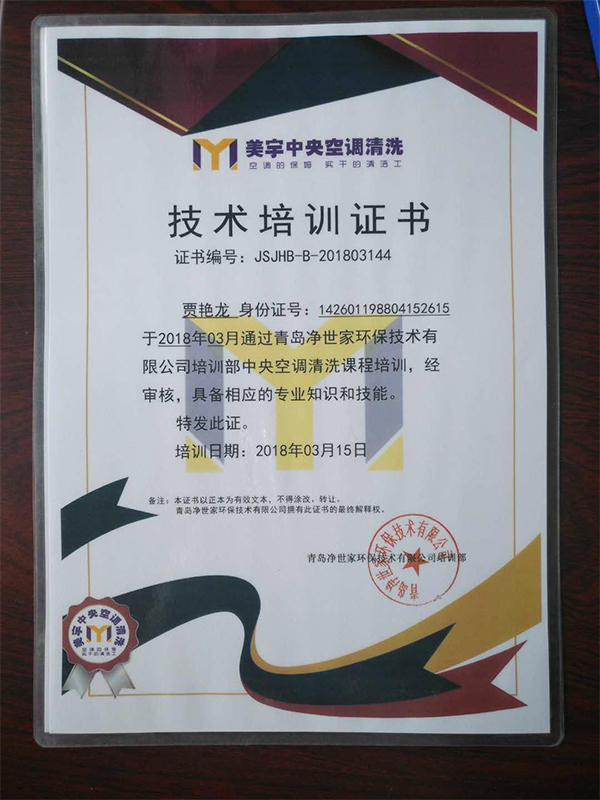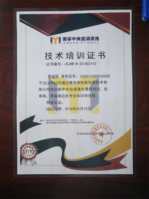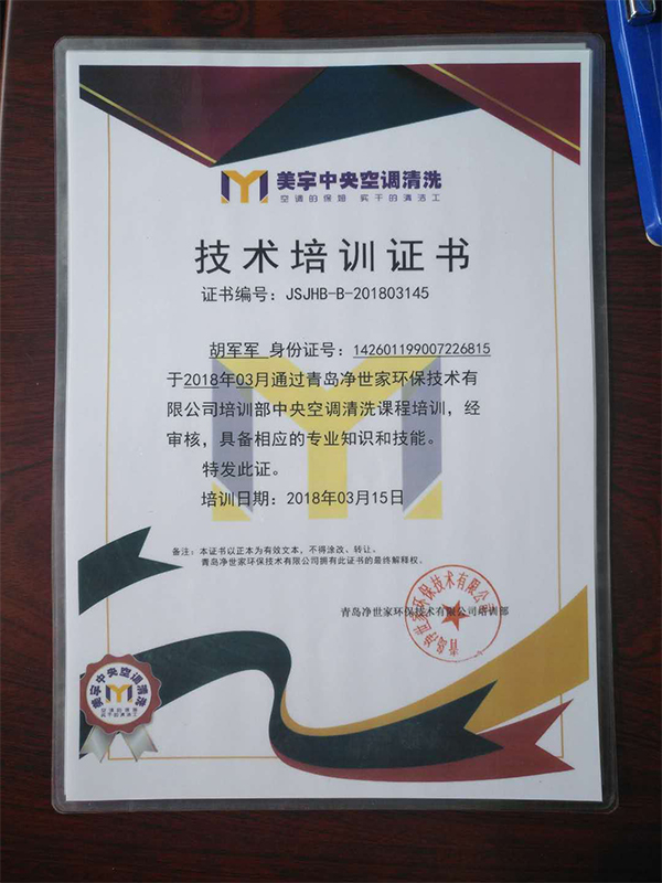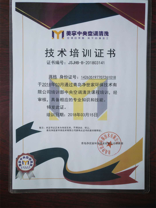 公司為響應(yīng)公共環(huán)境綠色、節(jié)能、環(huán)保要求,特安排專業(yè)人員赴相關(guān)企業(yè)進(jìn)行考察,于2018年簽訂合同代理青島凈世家環(huán)保技術(shù)有限公司青島美宇中央空調(diào)清洗等項(xiàng)目,青島凈世家環(huán)保技術(shù)有限公司對(duì)我公司進(jìn)行了相關(guān)授權(quán),同時(shí)于2018年3月19日公司安排技術(shù)骨干赴青島凈世家環(huán)保技術(shù)有限公司青島美宇中央空調(diào)清洗總部開(kāi)展了為期一周的專業(yè)技術(shù)培訓(xùn)。